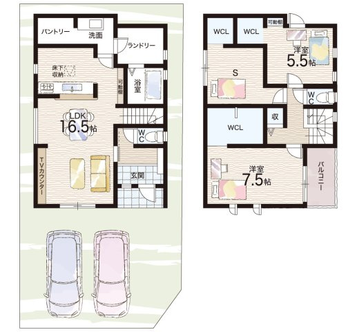 LDK 16.2帖/洋室 8.2帖/洋室 6.0帖/S