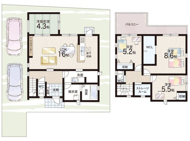 LDK 16.0帖/和室 5.2帖/洋室 7.2帖/洋室 6.2帖/洋室 5.2帖/S 3.7帖