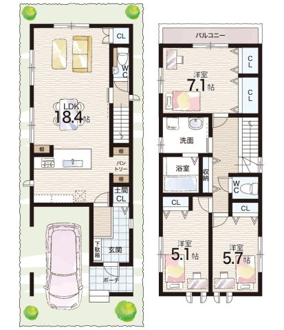 LDK 18.4帖/洋室 7.1帖/洋室 5.7帖/洋室 5.1帖