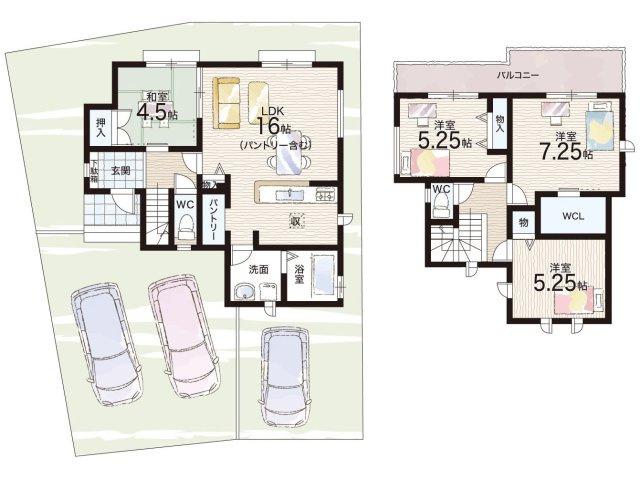 LDK 16.0帖/和室 4.5帖/洋室 7.2帖/洋室 5.2帖/洋室 5.2帖
