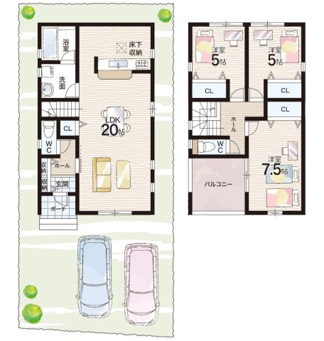 LDK 20.0帖/洋室 7.5帖/洋室 5.0帖/洋室 5.0帖