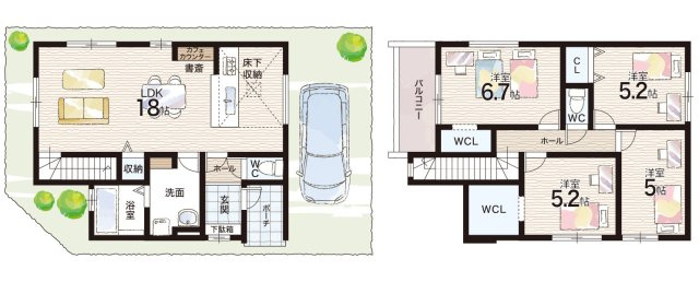 LDK 18.0帖/洋室 6.7帖/洋室 5.2帖/洋室 5.2帖/洋室 5.0帖