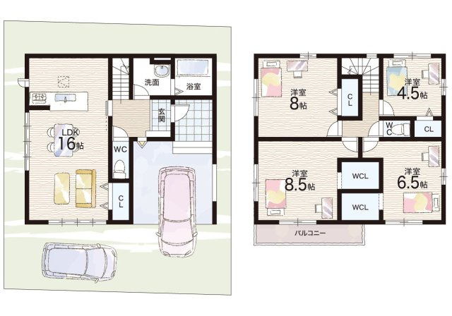 LDK 16.0帖/洋室 8.5帖/洋室 8.0帖/洋室 6.5帖/洋室 4.5帖