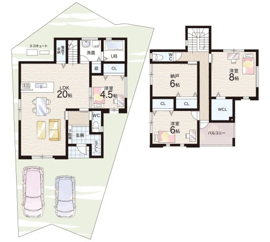 LDK 19.6帖/和室 4.5帖/洋室 8.0帖/洋室 6.0帖/洋室 6.0帖 - 向き