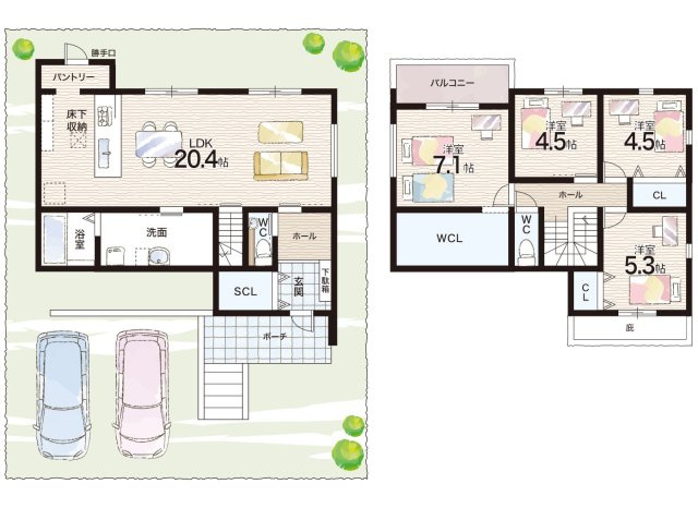 LDK 19.6帖/洋室 7.4帖/洋室 5.3帖/洋室 5.3帖/洋室 4.0帖