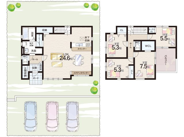 - 駐車3台可