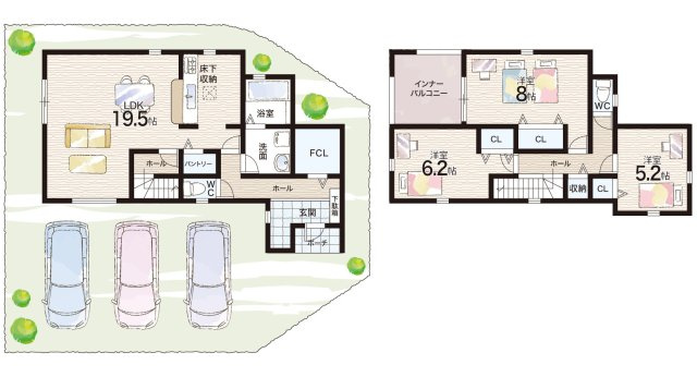 LDK 20.0帖/洋室 7.5帖/洋室 6.0帖/洋室 5.3帖