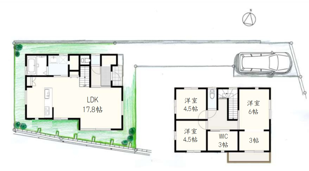 【居間・リビング】シンプルなリビングは、観葉植物等のインテリアを楽しめますね!パパ好みにも、ママ好みにも家具次第で雰囲気を変えることができます!