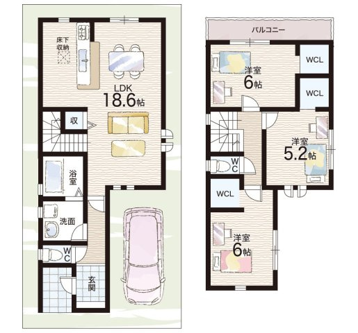 LDK 18.6帖/洋室 6.0帖/洋室 6.0帖/洋室 5.2帖