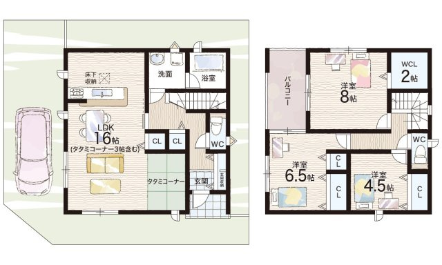 LDK 16.0帖/洋室 8.0帖/洋室 6.5帖/洋室 4.5帖 - 向き
