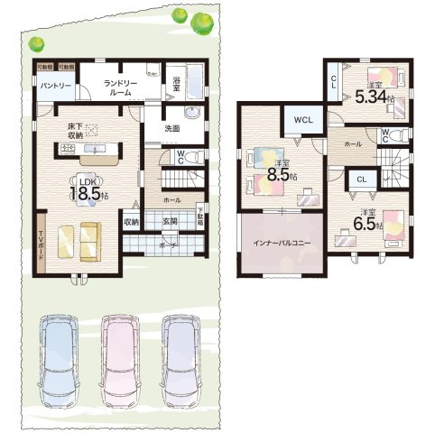 LDK 18.5帖/洋室 8.5帖/洋室 6.5帖/洋室 5.3帖