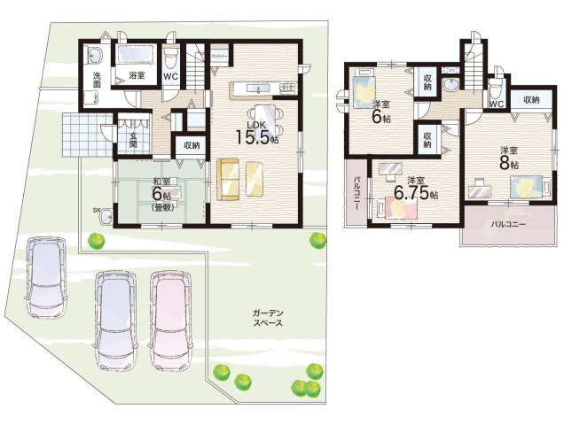 LDK 15.6帖/和室 6.0帖/洋室 6.0帖/洋室 8.5帖/洋室 6.0帖