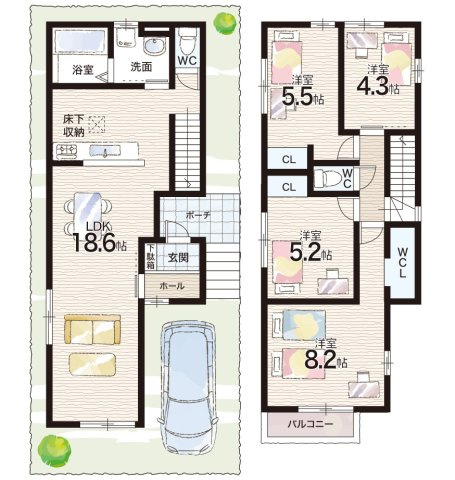 LDK 16.9帖/洋室 7.5帖/洋室 5.2帖/洋室 4.3帖/洋室 4.3帖