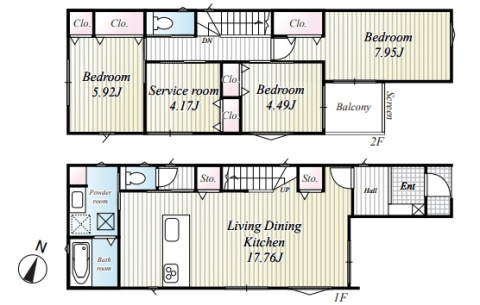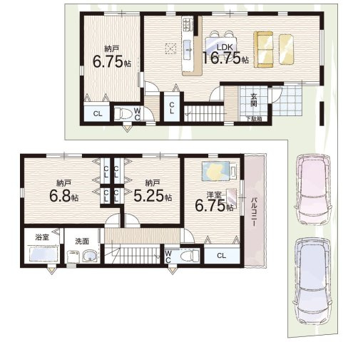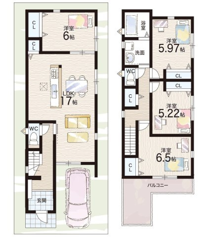 LDK 17.0帖/和室 6.0帖/洋室 6.6帖/洋室 6.5帖/S 5.2帖 - 向き