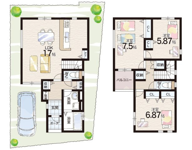 LDK 17.0帖/洋室 7.5帖/洋室 6.8帖/洋室 5.8帖 - 向き