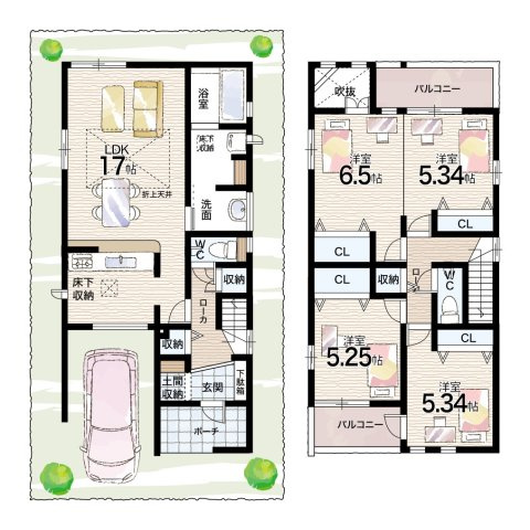 LDK 17.0帖/洋室 11.8帖/洋室 5.3帖/洋室 5.2帖