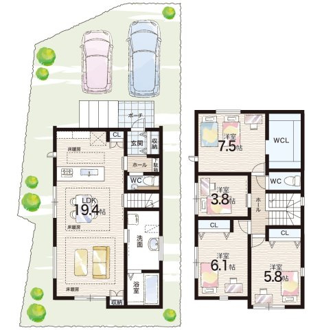 - 角地(南西 公道 6.5m)(南東 公道 6.5m)
