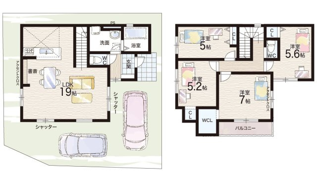 LDK 19.0帖/洋室 7.0帖/洋室 5.6帖/洋室 5.2帖/洋室 5.0帖 - 向き