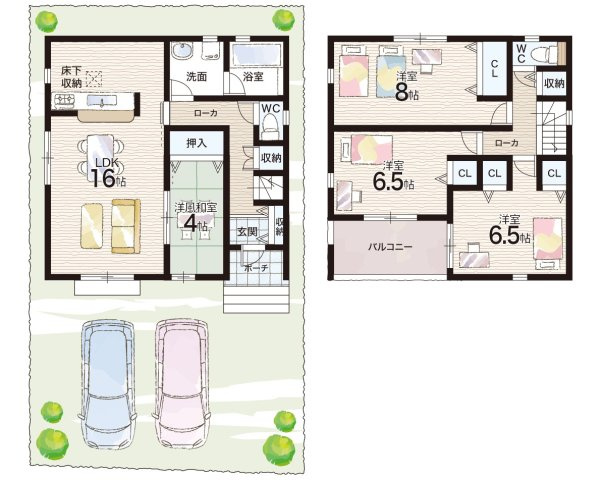 LDK 16.0帖/和室 4.0帖/洋室 8.0帖/洋室 6.5帖/洋室 6.5帖 - 向き
